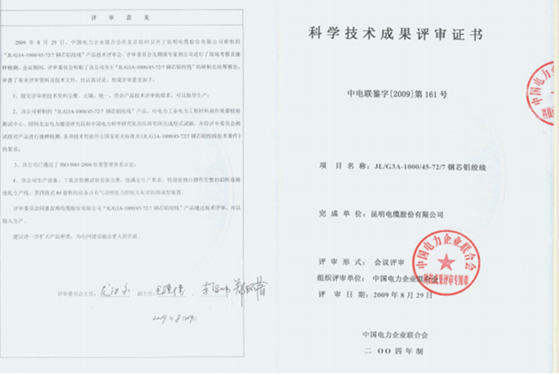 7、2008年8月首批研制成功国家电网锦屏一苏南±800kv特高压直流输电工程用900mm?钢芯铝绞线。